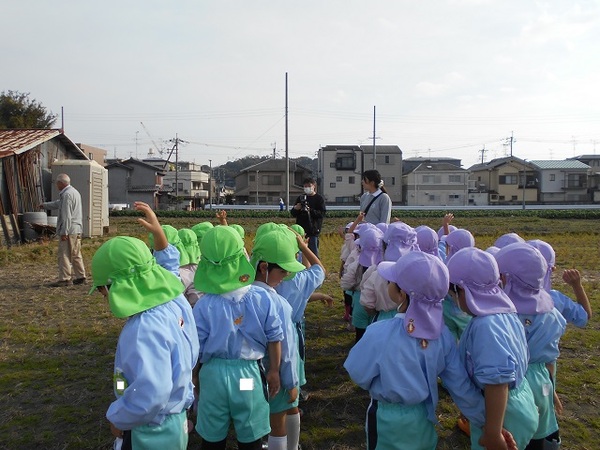 | 今日はすみれ組、ちゅうりっぷ組でお芋ほりに行きました。朝から「大きいお芋ほれるかなあ」と大はりきりの子どもたち。畑の土が固くて、なかなかお芋が出てこないお友だちもいたのですが、園長先生やバスの運転手さんにスコップで土をほぐしてもらって、畑からお芋が顔を出すとニコニコの顔になり、嬉しそうに自分の袋に入れていました。さあ、お芋はどんなお料理に変身するかな。また聞かせてくださいね。
