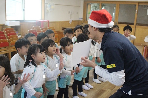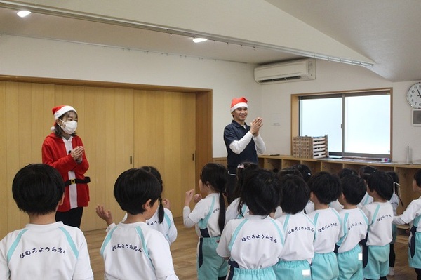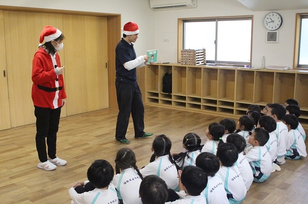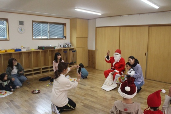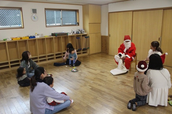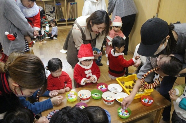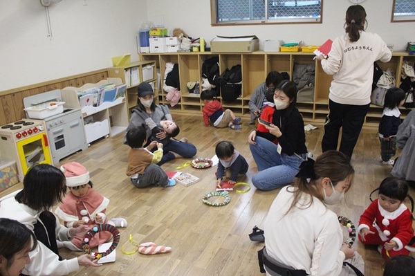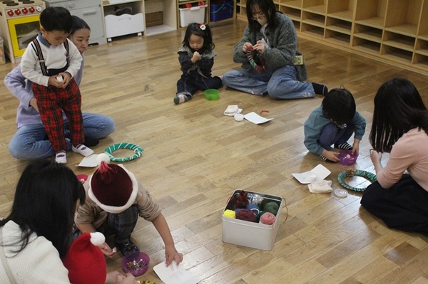 | 今回のすぎのこひろばは、クリスマスにちなんだ製作を行いました。毛糸を巻いたリースの土台に、かわいいボンボンやボタン、星にまつぼっくりを思い思いにとても集中して付けていました!! 2組さんはおうちの人と一緒に毛糸を巻くのにも挑戦しました。とても可愛らしいリースになりましたね。 クリスマスの紙芝居を読み終えたら、なんとサンタさんが登場!!びっくりしたり泣いちゃうお友だちもいましたが、優しいサンタさんにお話を聞いたり、プレゼントを貰ったり、最後は記念写真もとって、仲良くなれたかな☆ 今度は12月17日(水)に未就園児さん対象のおもちつき大会を実施しますので、ご近所・お友だちお誘いあわせのうえ、ぜひ幼稚園に遊びに来てくださいね♪ |