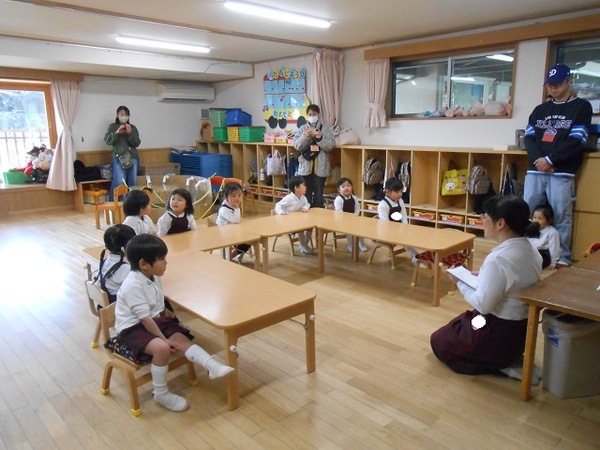 今日は、ブリの解体ショーがありました! 普段は切り身になったお魚をいただいていますが、目の前でお魚が捌かれていく様子に 子どもたちは興味津々でした♪ 生きている命をいただくことや、食卓に並ぶまでにたくさんの方が携わってくださり、いただくことができるということを教えていただき、今まで以上に感謝してごはんを食べることをお約束しました★ なんと明日は、園長先生が鉄板でブリを焼き、照り焼きにしてくださいます!! 楽しみにしていてくださいね🖤 また今回、KBSのテレビ会社の方が解体ショーの様子を放映してくださいます! 2月7日土曜日の午前10時30分からです!是非チェックしてみてください! 未就園児さんの部もたくさんのご参加ありがとうございました★ |