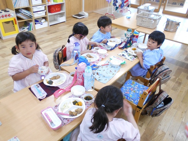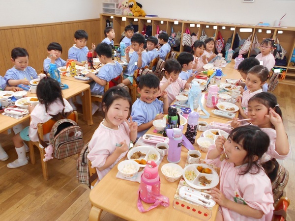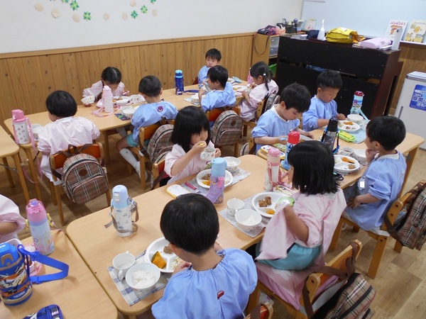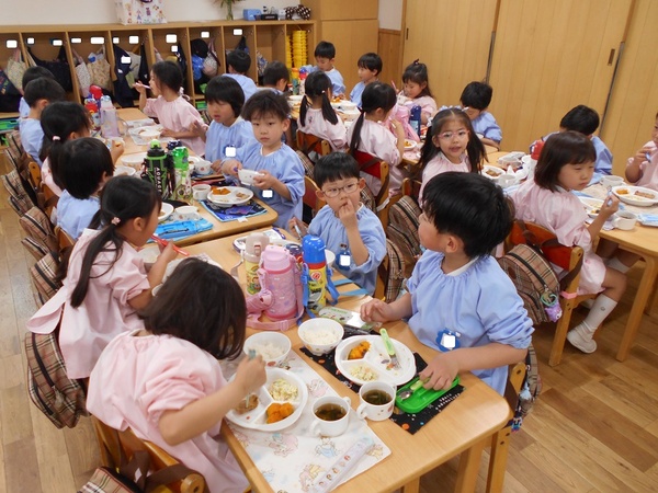 ちゅうりっぷ組、すみれ組のお部屋からは、お友だちと遊んでいる楽しい声が聞こえてきます♪少しずつ幼稚園にも慣れてきた様子です。 今日からはさくら組、ばら組は午後保育が始まり、久しぶりに幼稚園の給食をお友だちと美味しくいただきました! |