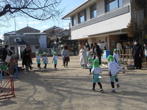今日は、節分会でした。 「鬼こわくない!」「来たら退治する!」と強気だった子どもたちも、いざ目の前に現れると、後ずさりするほど怖かった鬼さん。 泣いてしまったお友だちもいますが、泣きながらも立ち向かい豆を投げることができました★ みんなのお腹の中にいる意地悪鬼さん、怒りんぼ鬼さん、泣き虫鬼さん・・・いろいろな鬼さんをしっかり退治できたと思います!