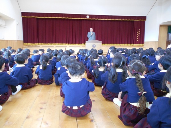 今日は、2学期終業式でした! 運動会、はむろ祭り、遠足などなど、行事がたくさんあった2学期。 みんなそれぞれ自分の精一杯で頑張ったことでしょう。 そして、お友だちや先生との絆もぐっと深まったことでしょう。 そんな自分に「がんばったね」と言いながら、拍手し、頭をよしよししました👏☆ 冬休みの間、園長先生とのお約束をしっかり守ってたのしく過ごし、また元気に3学期登園してくださいね! ではみなさん、よいお年をお迎えください! |