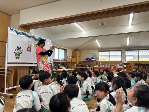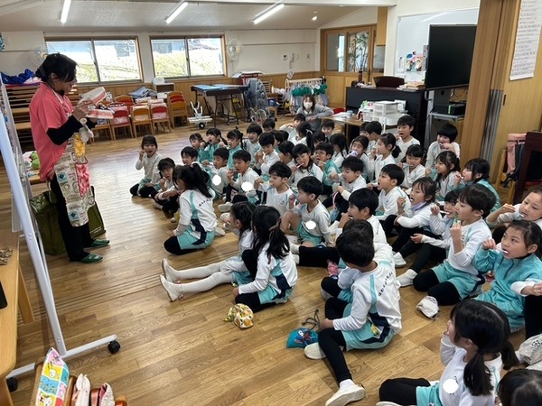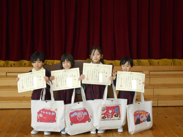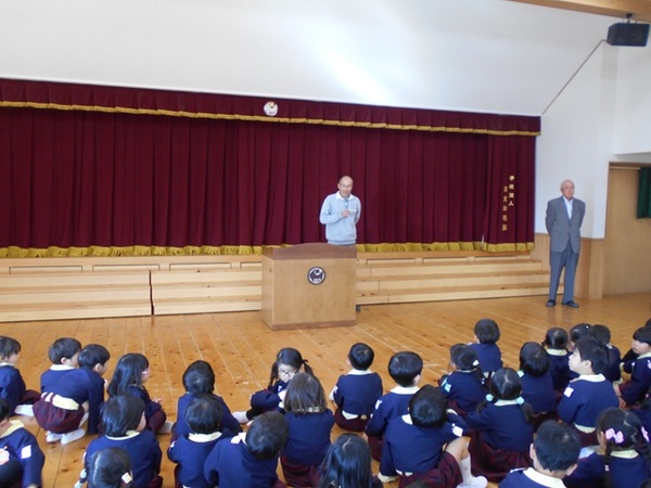 今日は、3学期始業式でした。 大きな声で「明けましておめでとうございます。今年もよろしくお願いします。」と新年のご挨拶をしました。 久しぶりに会ったみんなは、園長先生や賢亮先生のお話を聞く姿勢もかっこよくて、お兄さんお姉さんになったように感じました🖤 長い冬休みが明けて、大好きな先生やお友だちに久しぶりに会えて嬉しかったですね☆ 先生たちも、みんなに会えて、冬休みの楽しいお話をたくさん聞かせてもらえて嬉しかったです! そして、始業式の後には、消防画が入選したお友だちの表彰式を行いました! 描いた絵のおかばんも頂きましたよ!よかったですね(^^) 3学期も、2学期にできなかった発表会があったり、作品展があったりと行事が続きます。 まだまだ寒い日が続きますので体調に気を付けて、残り少ない今のクラスでの日々を楽しんで過ごしましょうね!