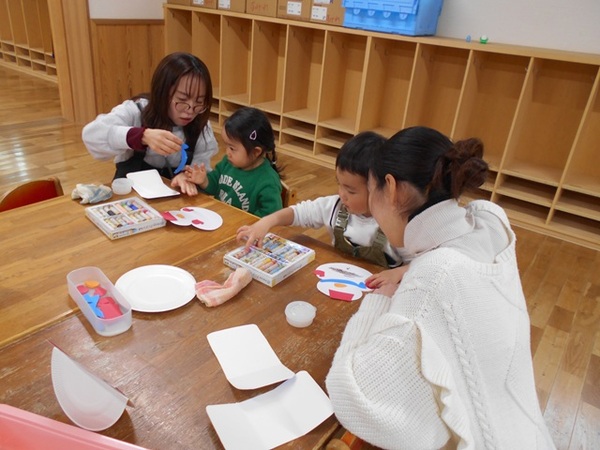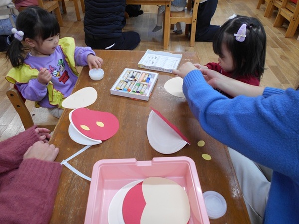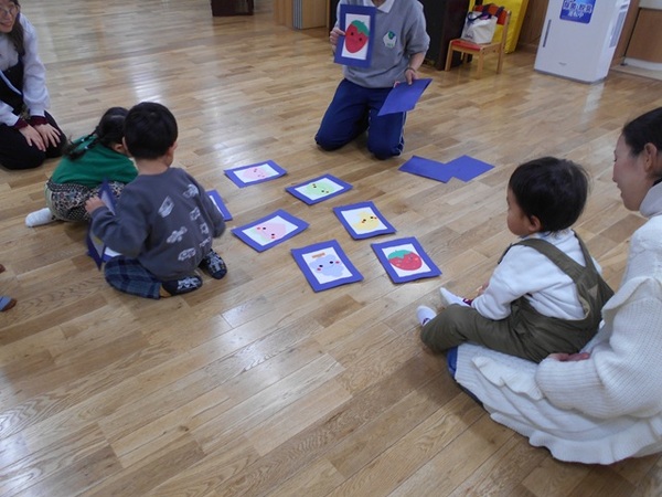 | 今回のすぎのこひろばは、年明け最初の活動ということでお正月遊びをしました。 まず、カードを使ってカルタをしました。先生の声をよく聞いて上手にとるお友だちがたくさんいてびっくり☆2組さんは神経衰弱もして盛り上がりましたね!! その後はゆらゆら揺れるだるまさんや雪だるまを製作しました。それぞれの個性が光った作品が出来上がりました☆ 最後にたこあげをして思いきり身体を動かしました。今年も寒さに負けず元気に過ごしてほしいなと思います。 次回は1月28日(水)ブリの解体ショーです。お誘い合わせの上、ぜひ見に来てくださいね☆ |