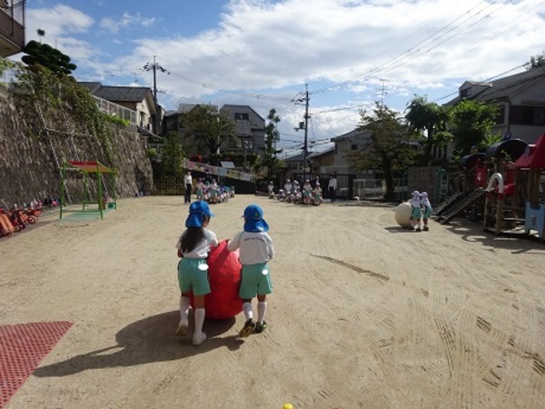 | 英語教室では、歌に合わせて英単語を知ったりゲームをして楽しみました。 体操教室では、前回はクラスごとに行いましたが、今日は学年合同で早速ですが運動会の組体操に向けての練習が始まり、頑張ろうという気持ちが見られた子どもたちでした。 今日は体操を頑張ったのでばら組みんなで気晴らしにお散歩へ行きました!初めての道を通って新しい発見が沢山できましたよ☆ |
