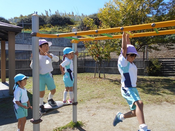 | 今日は、春の遠足で滋賀県にあるがんばりまめの杜へ行きました。遠足が近づくにつれ楽しみで仕方がない子どもたちの様子があり、今日も登園してから「早く行きたい!」「どんなところに行くのかな?」と心待ちにしていました。 いざ初めて見る大きな遊具を目の前にすると、目をキラキラ輝かせて大興奮の子どもたちでした!大きな遊具や滑り台、雲梯、ブランコでルールを守りながら目一杯楽しんでいました! 遊んだ後は、大好きなお弁当をみんなで食べ、食べ終えたお友だちから大きなホールで様々な色のカプラを広げたり、再び遊具で楽しみました。 帰りのバスでは、遠足での楽しい思い出を振り返っているお友だちや、遊び疲れてぐっすり眠っているお友だちも見られました。 お家でも楽しかったお話を沢山聞いてあげてください! |