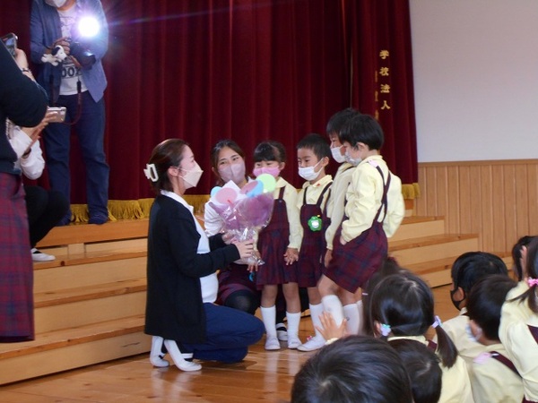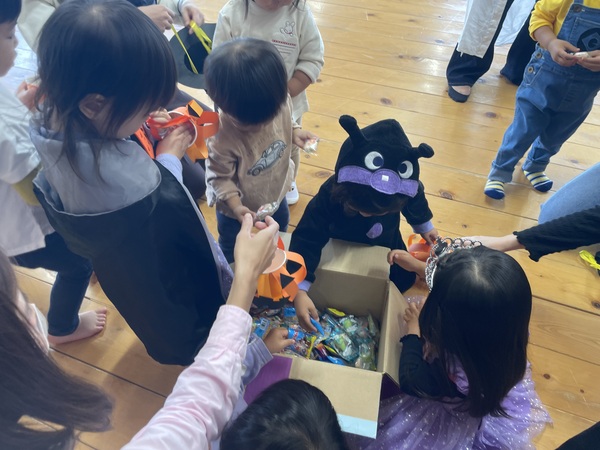| とっても良いお天気の中、京都府立植物園で行われた園児大会に参加してきました。 ビンゴを完成させようといろんなところを探す子どもたち。「どんぐりハンターにつかまるな」というミッションなのに、見つけたことが嬉しくてつい追いかけていました(笑) 知事さんのお話を聞いた後はみんなで「昆虫太極拳」を踊りました! お家の方と一緒に回れて嬉しそうな子どもたちでしたね(^O^) |