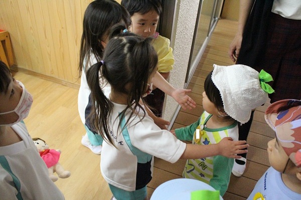 | 今日はすぎの子1組さんのクリスマス会でした。 子どもたちの手型を元にしたリースを製作しました。のりを使ってペタペタ… 小さなおててだからこそ可愛いリースになりました。記念にお家に飾ってね〜 クリスマスの紙芝居をみたその後は・・・!?サンタさんが登場!!子どもたちはビックリ!!! フランクにハイタッチしているお友だちや何だか怖いお友だち、それぞれでしたがみんなサンタさんから直接プレゼントを頂けました。 そしてサンタさんと写真を撮ってからは一緒にレッツ・ダンス!! 楽しい時間はあっという間に、サンタさんはまたどこかのよい子の所にプレゼントを届けに行かれました。 来年も又きてね〜 |