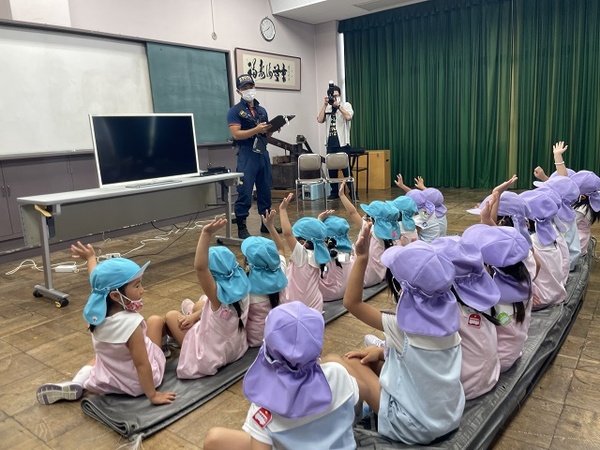 | 今日はばら・さくら組で西京消防署に行ってきました。避難訓練のアニメ映像を見て約束事を再確認したり、消火器を使って一人ずつ 消火体験もさせて頂きました。消防車の見学では色々な扉を開けて中を見せてもらいました。長いホースや電話、防火衣が入っていてじっくり見入っていましたよ。 またお話聞いてみて下さいね! |