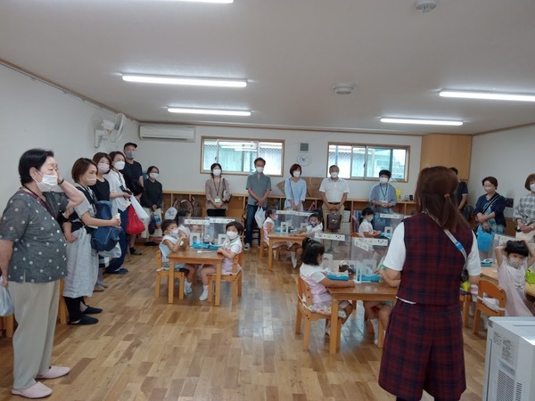 | 本日、コロナウイルス感染拡大防止の為に自粛をしていた祖父母参観を行う事が出来ました。 祖父母やお家の方が見えると、嬉しそうにするお友達や少し緊張した様子の姿も見られました。 各クラスではお部屋で製作を行い、祖父母やお家の方と一緒に楽しく取り組み嬉しそうに過ごしていました(^o^) 最後に、「ありがとう」の気持ちを込めて作ったプレゼントを渡しました♡ 喜んで頂けたら嬉しいです。 短い時間ではありましたが、祖父母やお家の方と一緒に素敵な時間を過ごすことが出来ました。 お忙しい中、お越し頂きありがとうございました。 |