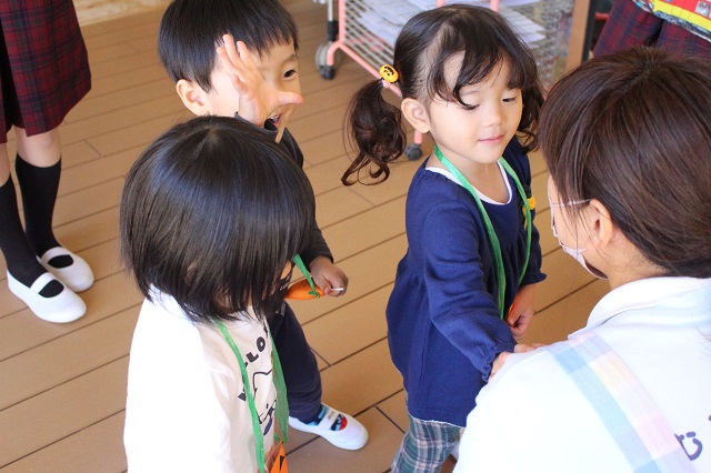 | 今日は、6月のお誕生日のお友達をみんなでお祝いしました! 担任の先生からはカードを、お友達からは素敵な歌をプレゼントしました。 1つ大きくなったお友達、お誕生日おめでとう(^O^) 出し物の人形劇「おむすびころりん」、面白かったね!! |