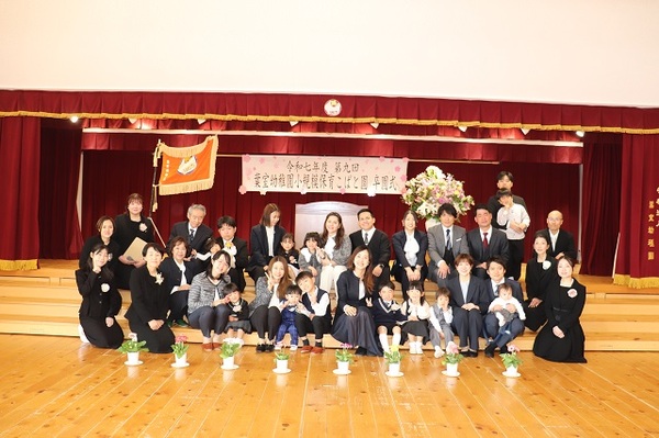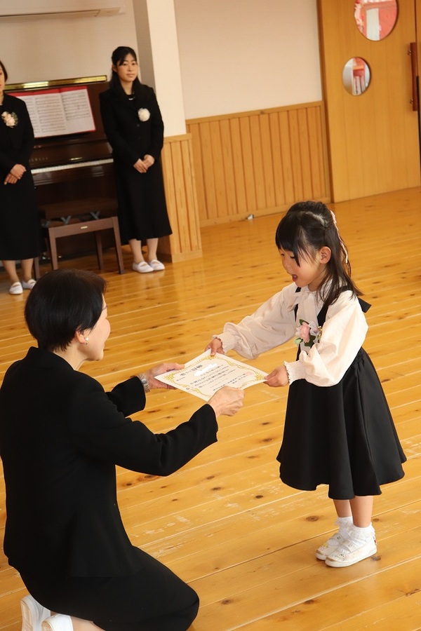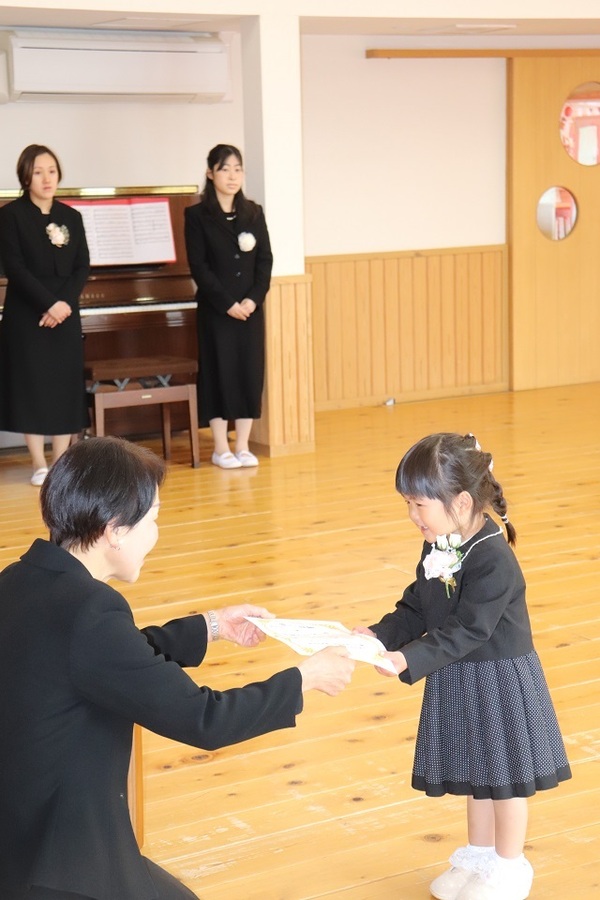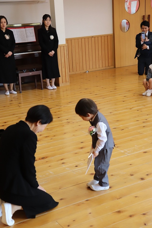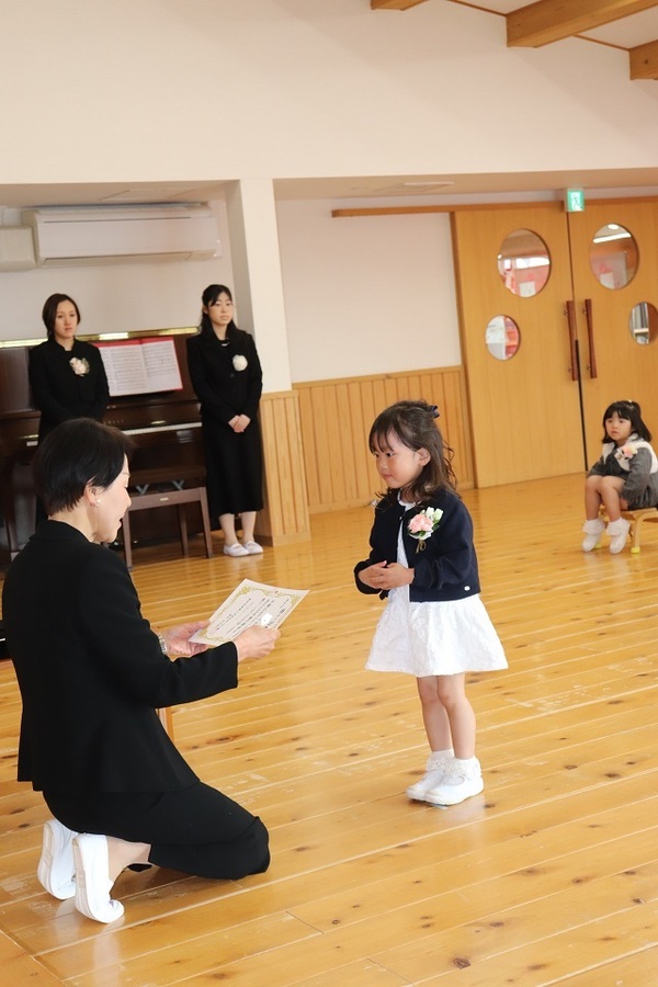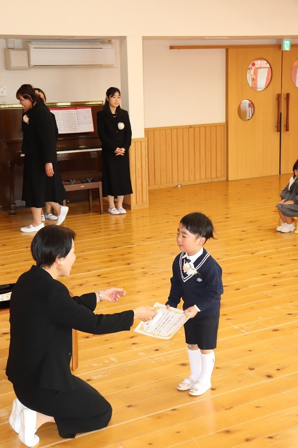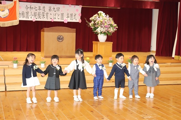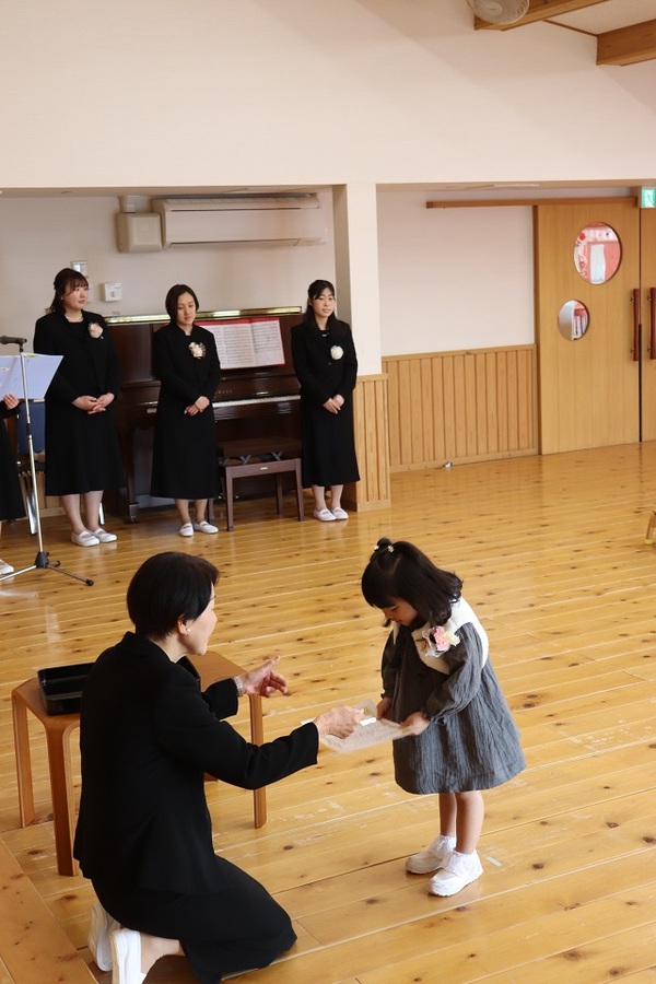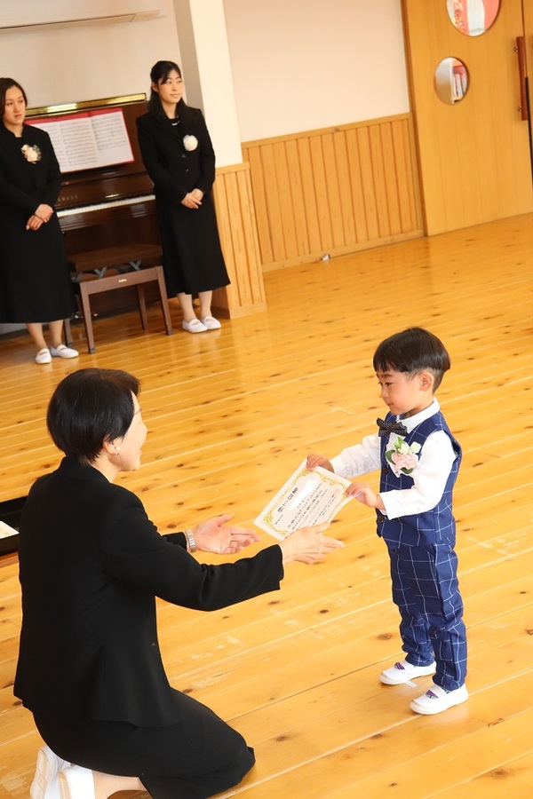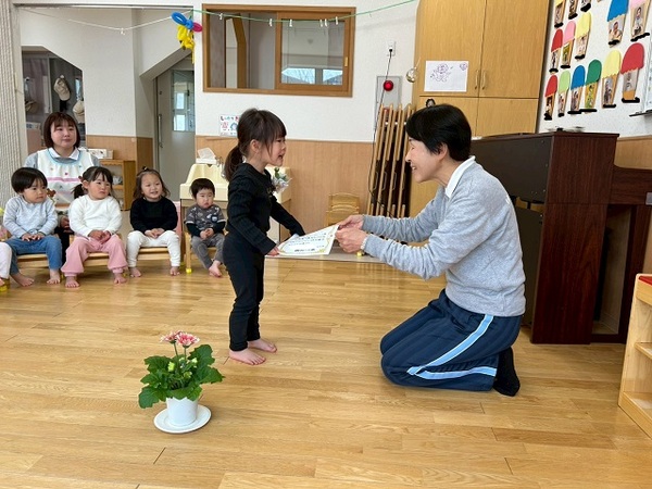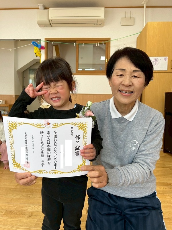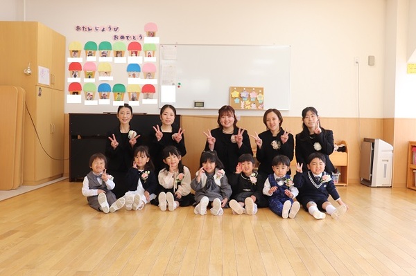 | 3月21日、お天気にも恵まれ、令和7年度の卒園式を執り行いました✨ 登園した時から、いつもとは違う恰好の先生やお友だちにドキドキと緊張していたうさぎ組の子どもたちでしたが、「かわいいね、かっこいいね!」と褒めるとえへへと嬉しそうな様子も見せてくれました☻ いざ式が始まると、緊張しながらも一生懸命入場してくれました!そして自分のお名前が呼ばれると元気に「はい!」とお返事もしてくれましたね。大きな声で「ありがとうございます」と言い、証書を受け取る姿に成長を感じ、感動したと同時に嬉しくもなりました✨ 旅立ってしまう事が悲しくもありますが、うさぎ組の子どもたちがこれからも、自分たちらしく生きていける事をいつまでも応援しています。うさぎ組のお友だち、卒園おめでとう☻ |