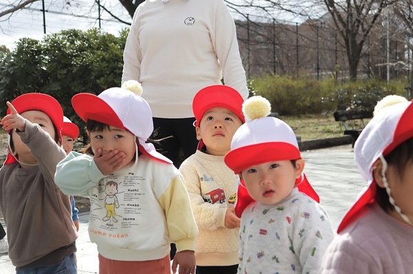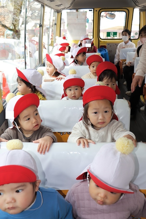 | 今日は、バスに乗って上桂グラウンド公園に行きいました♪ 前日から、「明日はバスに乗るの!」と話して楽しみにしている子ども達でした! 到着してからは、ひよこ組とうさぎ組はそれぞれ分かれて散歩に行きましたよ! 広い所で追いかけっこやかくれんぼをしたり、落ちてる葉っぱを拾ったりして遊びました☻ 他にも公園や、大きなすべり台があり、普段行っている公園とは違う遊具におおはしゃぎの子ども達で、何度も滑ってみる子ども達でしたよ✨ 残念ながら、途中で雨が降ってきた為、バスに乗ってドライブに行きました!道路を走っているバスやクレーン車などを見て嬉しそうでした! 帰る前に、電車も見に行って、通るたびに「電車きたよ!」「キティちゃんの電車だ!」など沢山話してくれた子ども達でした! お昼ご飯は、いつもと違うお部屋で皆で食べましたよ☻ 楽しい思い出が沢山作れましたね💗 |